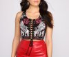 Bring those rocker-chic vibes to your night-out look with this trendy graphic tank! It features a sleeveless scoop neckline, a sultry lace-up front, a center wings graphic with the script "Rockstar," and a cropped, form-hugging fit. Style this tank with a