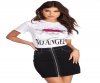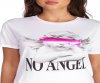 You're not the innocent! Get into a little trouble in this white tee shirt that features a round neckline, short rolled sleeves and an cherub angels graphic with a magenta accent across the eyes. The text below the angel reads: "No Angel". Tee shirt is composed of a cotton knit fabric that offers a relaxed fit with a moderate stretch.