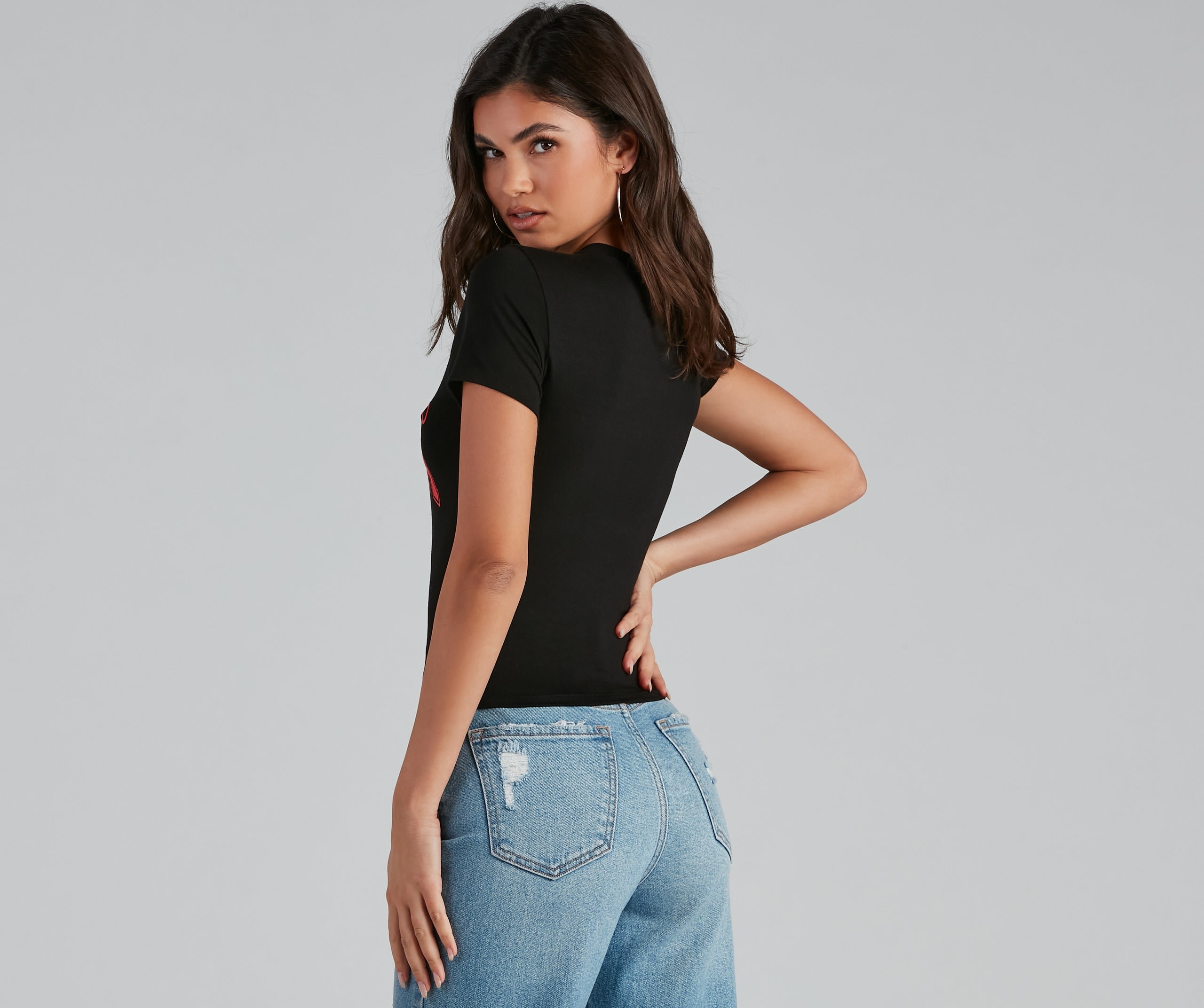 Embrace your singlehood girl in this graphic tee featuring a crew neck, cap sleeves, and a script that reads, 'No Boyfriend, No Drama' on a fitted hem. Composed of a jersey knit fabric with a moderate stretch. Perfect for styling with