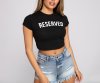 Let this top say it all! The crop top features a crew neckline, short sleeves, a graphic that reads "Reserved", and a cropped hem. The top is composed of a cotton knit fabric that offers a relaxed fit with a moderate stretch. Complete look with