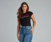 Look cute causing ruckus in this graphic tee! It features short sleeves, a crew neckline, and a graphic script that reads, "Scorpio The Troublemaker" on a cropped hem. Pair this tee with