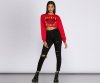 Are you a sinner or a saint??This crop top features a crew neckline, long sleeves and a short hemline that reaches mid torso. Crew neck features a vintage inspired design that features a script graphic.
