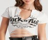 Flaunt your original status as a rock babe in this edgy graphic tee featuring short sleeves, a crew neck with a V-cut notch, a slashed hem, and a front script that reads, "The Original Rock N Roll". Complete the look in sleek
