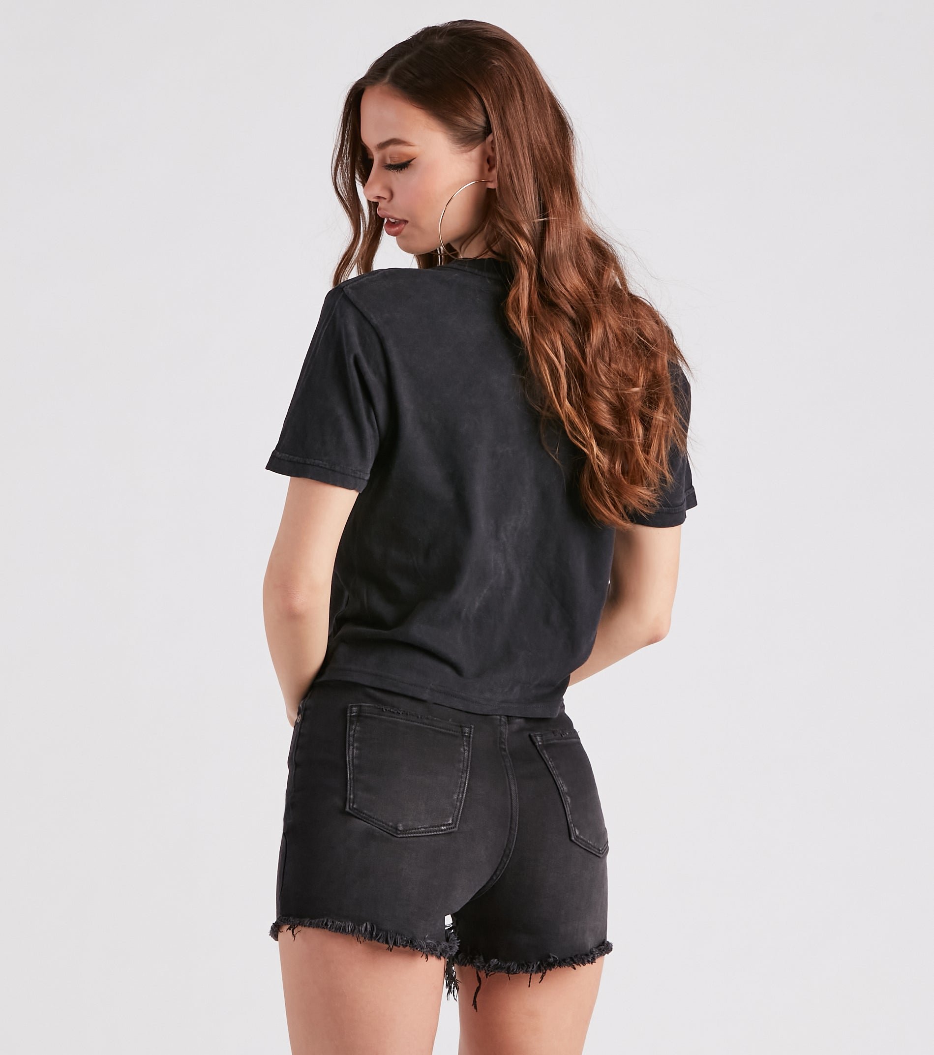 Flaunt how you take your favorite drink! Raise a glass to this graphic tee featuring short sleeves, a crew neck, and front graphic detail with a script that reads "Smooth Like Whiskey" and a relaxed crop hem. The tee is designed with a vintage-inspired mineral wash on stretchy cotton fabric. Complete the look in