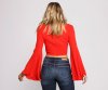 Hey beauty! Get that boho babe vibe in this bell sleeve tie front top. It features long flowy bell sleeves and a tie front detail creating a V neckline and a majorly cropped hem. Pair with some