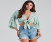 This breezy and stylish kimono top is perfect for elevating your summer closet! It features flowy, 3/4 length sleeves, a tie-front closure, and a cropped hem on crinkle woven fabric. Complete the look in denim