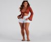 Bring the heat this spring in this breezy faux suede top featuring bell sleeves, a plunge v-neck, and a tie-front cropped hem. Complete the look in a lacey