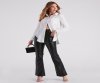 This long sleeve top will give your closet a touch of chic! It features long sleeves with button cuffs, a collar neckline, button-up front closures, front pockets, and a relaxed scoop hem. The airy textured woven fabric has no stretch. Style with