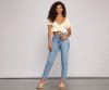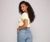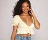 Keep it sweet with a crop top that brings pretty details! The crop top features a plunging V-neckline, short puff sleeves, a tie front, and a cropped hem. Complete look with a