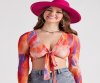Show off those dreamy summer vibes in this sheer mesh multi-colored top! Featuring long fitted sleeves, a tie-front design creating a V-neckline, a fitted, cropped hem, and a bold multi-color printed design, this top is the perfect lightweight layer for the season. Style over a