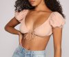 Keep your summer look effortlessly on-trend with this adorable crop top. It features short puff sleeves, a deep V-neckline with a tie-front, and a majorly cropped hem. Pair this top with