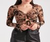 Feeling fancy? Dress up your favorite bottoms in this burnout velvet crop top! It features long sleeves with flared slit cuffs, a plunge V-neckline, and a cutout front with an adjustable lace-up design with tie closure. Complete the look in sleek