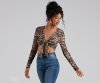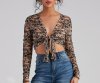 Get those flirty vibes in this adorable floral lace crop top! It features long fitted sleeves, a V neckline, a tie front detail, and a cropped, form-hugging fit. Pair this top with a