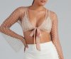 Bring that glowing glam with a luxe tie front top! Layer this beauty over a satin cami for a date night look! The top features a V-neckline, long sleeves, a chiffon tie front, and cropped hem. The top is embellished with heat stones and faux pearls.?
