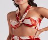 You'll be on total island time in this bold floral tube top! It features a strapless sweetheart neckline, a tie-front design that can also be styled as halter straps, an ultra-cropped, fitted hem, and an abstract floral print pattern that will draw everyone's attention to your chic look. Style with the matching wide-leg pants for a vacay-ready 'fit.