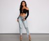Yes babe, show off your trendy style in this ribbed knit crop top! It features an off the shoulder neckline, long fitted sleeves, tie front details with cut outs, and a cropped, form-hugging fit. Pair this top with