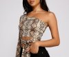 Yes queen, show off your trendy style in this snake print crop top! It features a one shoulder neckline with a single long fitted sleeve, a sultry cut out with a tie front waist, and a cropped, form-hugging fit. Pair this top with