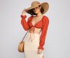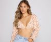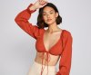 Bring sweetness to your style with this adorable crop top! It features long puff sleeves, a deep V-neckline with a tie-front closure, and a majorly cropped, form-hugging fit. The lightweight woven fabric has no stretch. Complete your look with a