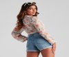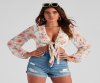 Just tie this floral chiffon top up and wait for all the compliments! It features long peasant sleeves, a plunge v-neckline, an open-front design with a tie-front closure, and a cropped hem. Complete the look in chic