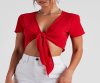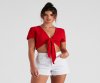 Dress up your outfit by layering on this crepe top featuring short sleeves and a tie-front closure along the cropped hem. Style with a basic