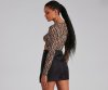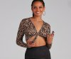 Keep it bold with a tie-front top that slays! The top features a trendy zebra print, a plunging neckline with a tie-front accent, long sleeves, and a cropped hem. The top is composed of a semi-sheer mesh fabric that offers a form hugging fit. Complete look with a