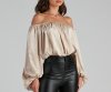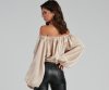 The hunt for the perfect blouse ends here with this satin leopard top! It features billowing long peasant sleeves, an off-the-shoulder neckline, and a cropped hem. Composed of satin-lined fabric with no stretch. Perfect for styling with distressed
