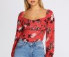 You'll be blossuming with beauty in this adorable printed blouse! It features long sleeves with smocked cuffs, a square neck with chest seam detailing, a stretchy smocked back, and a cropped hem. Top is composed of a lightweight woven fabric.